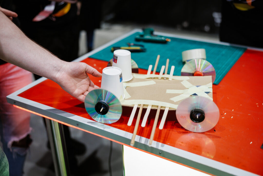 Esimese ülesandena tuli tiimidel ehitada iseseisvalt töötav sorteerimismasin – midagi, millega nendel ettevõtetel tuleb üsna sageli päriselus kokku puutuda. Seejärel pidid nad transportima palli saali ühest otsast teise ning lõpuks iseehitatud sõidukiga võimalikult palju kurikaid maha kukutama.